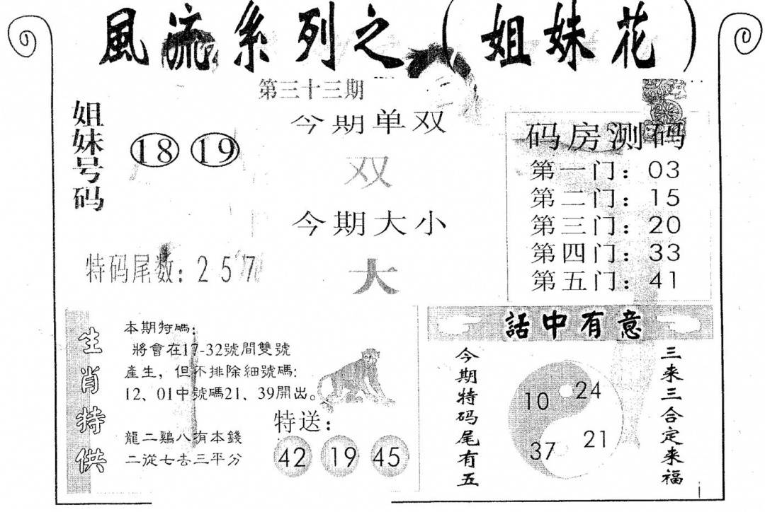另版黄大仙灵码B