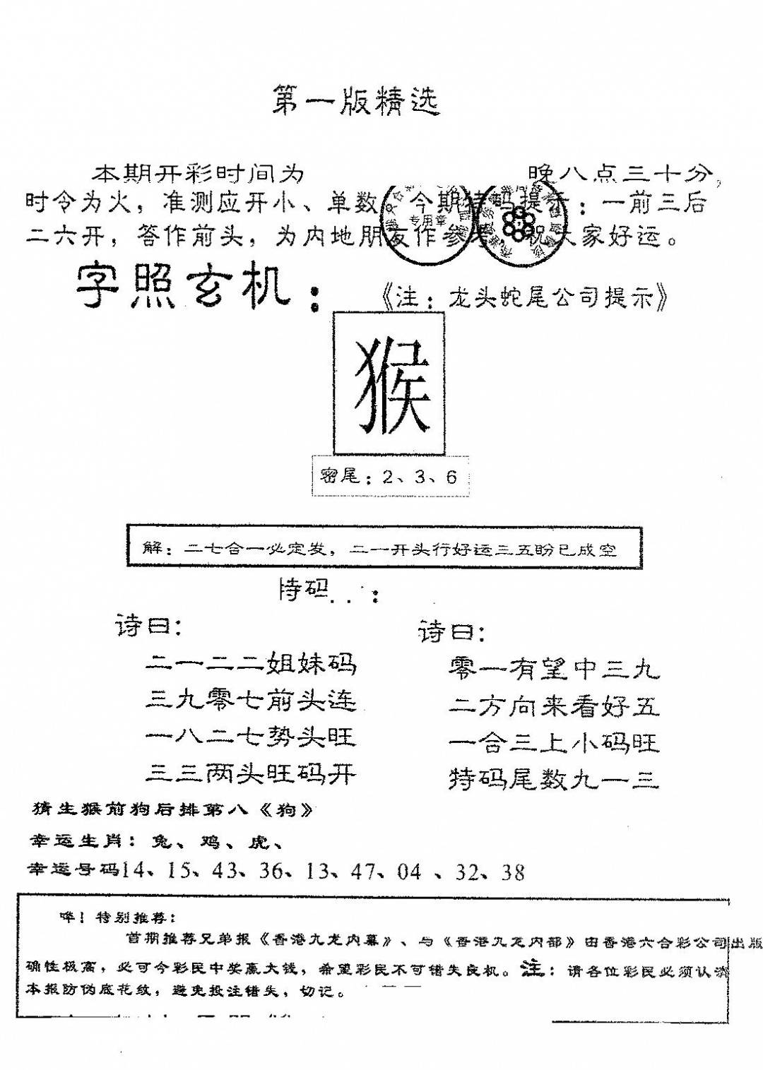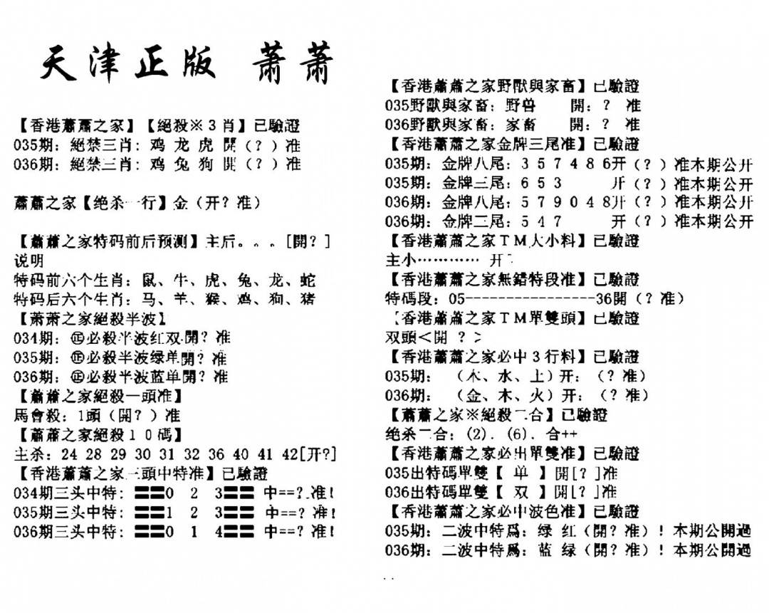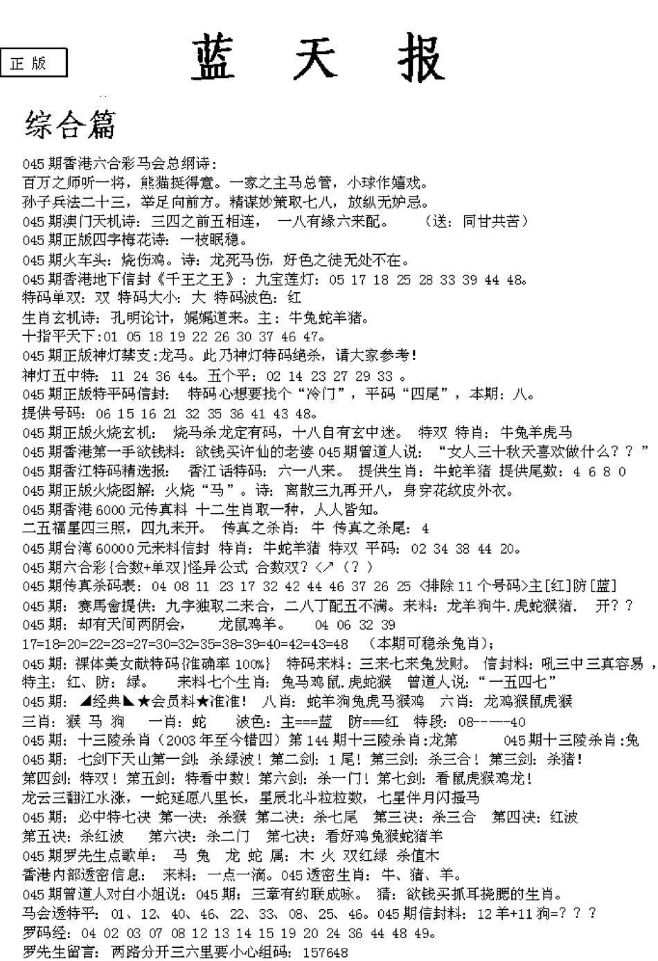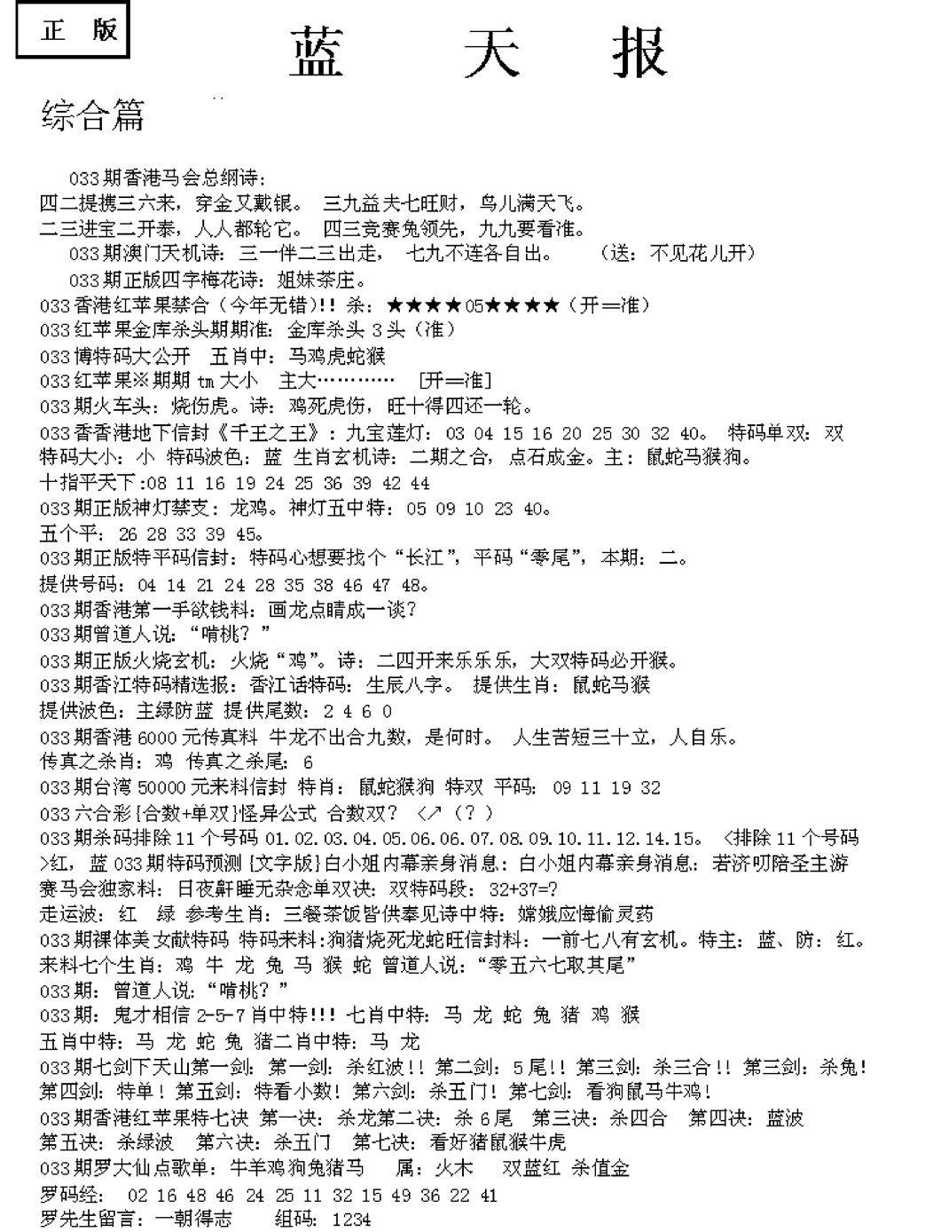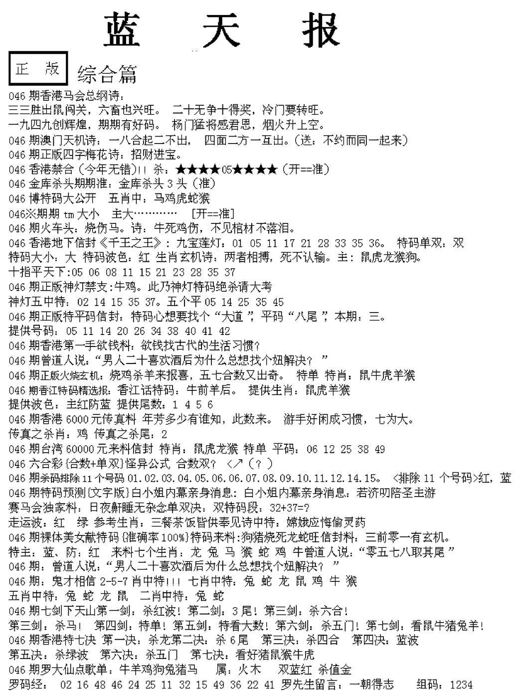 老版天机报
