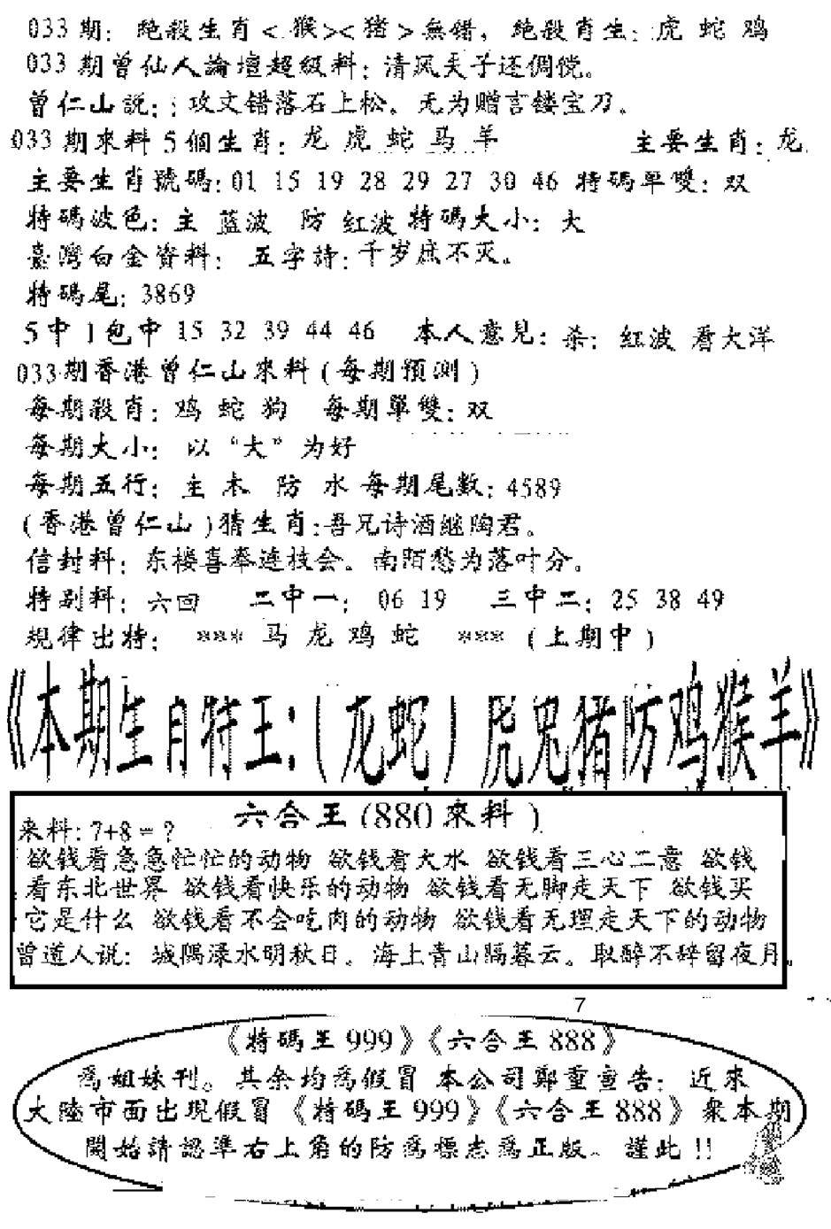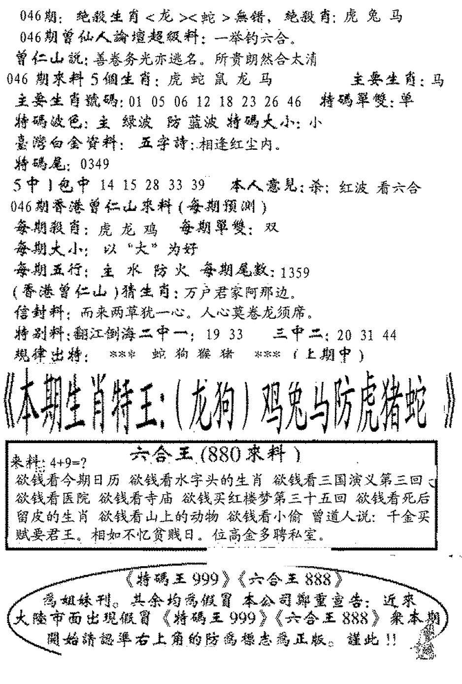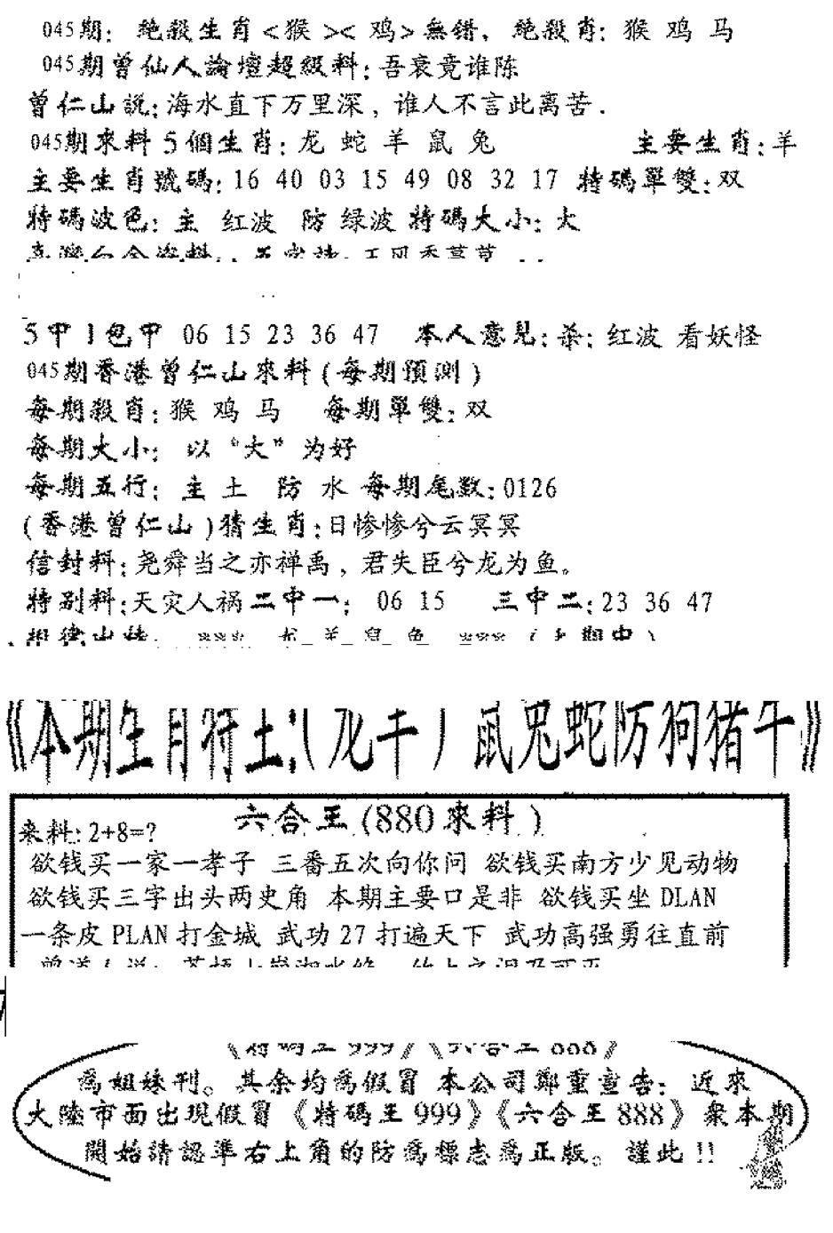 另版六合禅机A