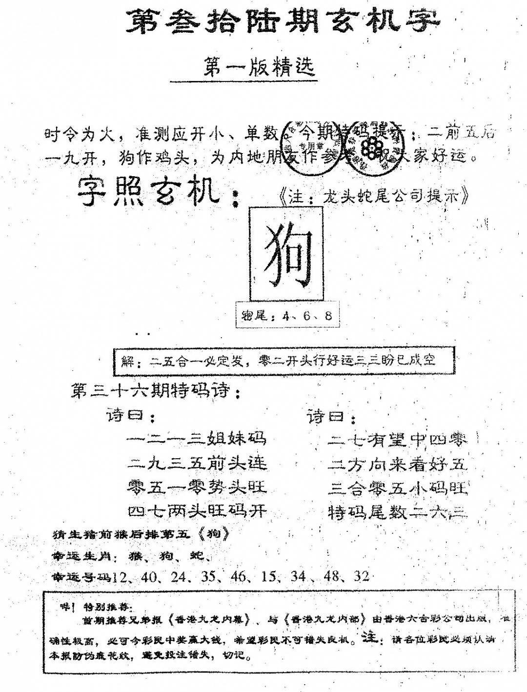 老版跑狗图