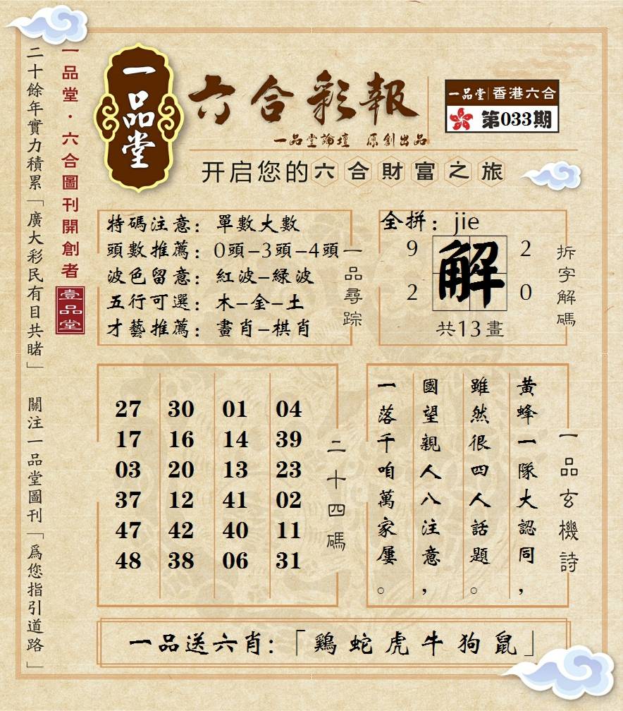 一品堂六合彩报