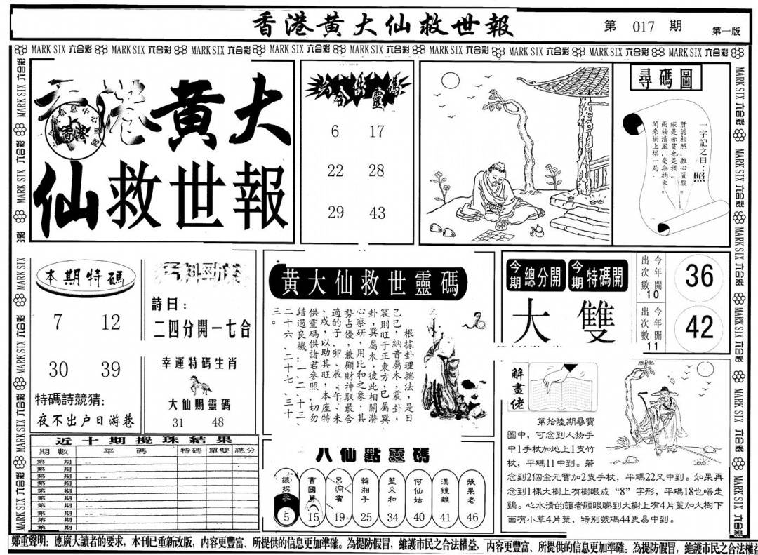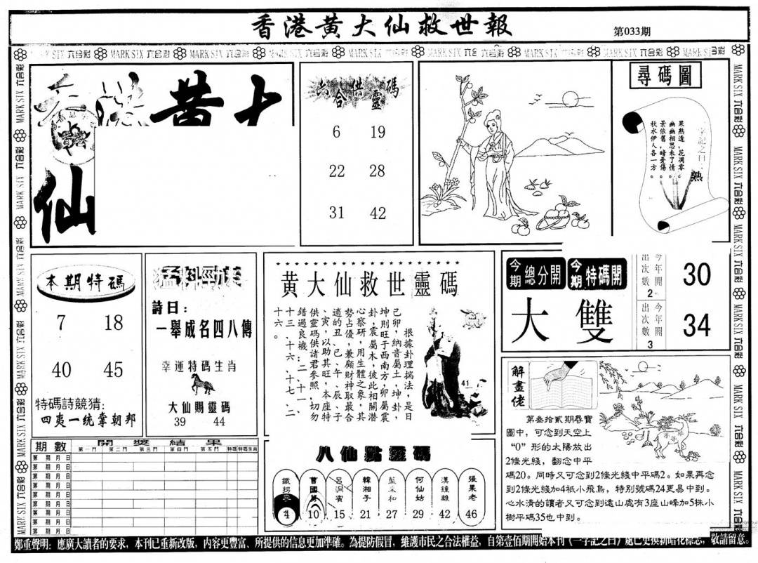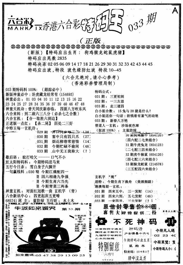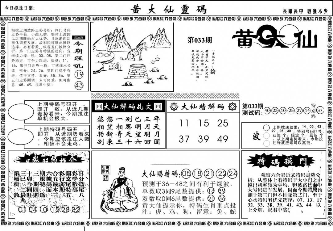另版黄大仙灵码A