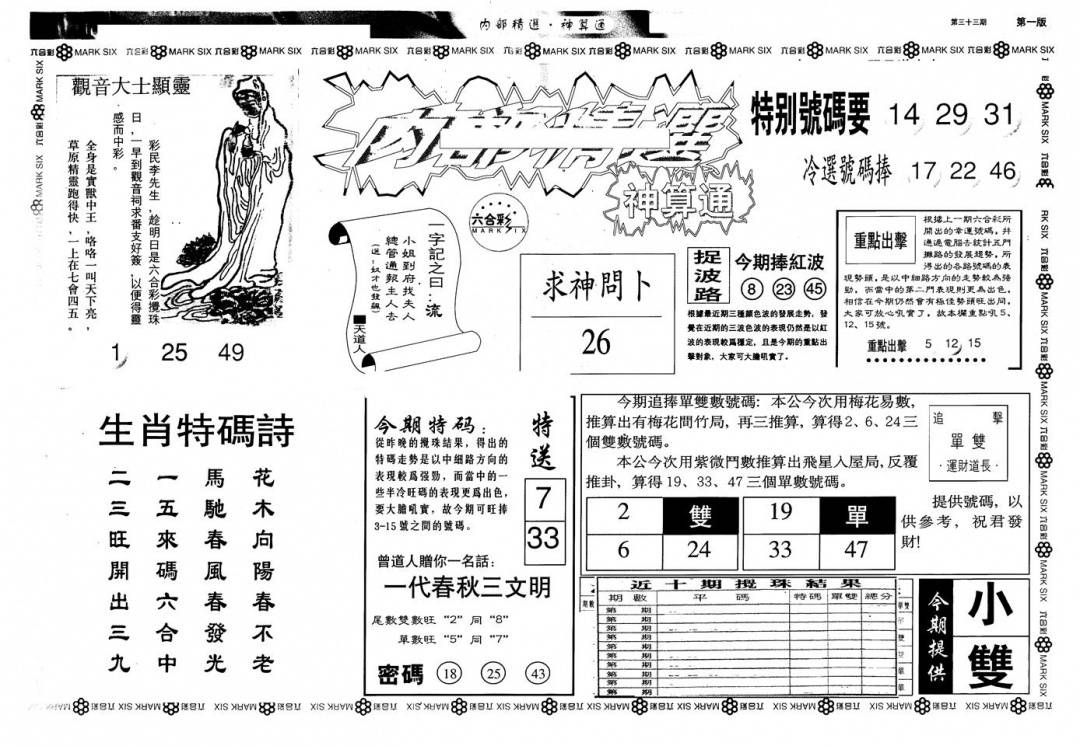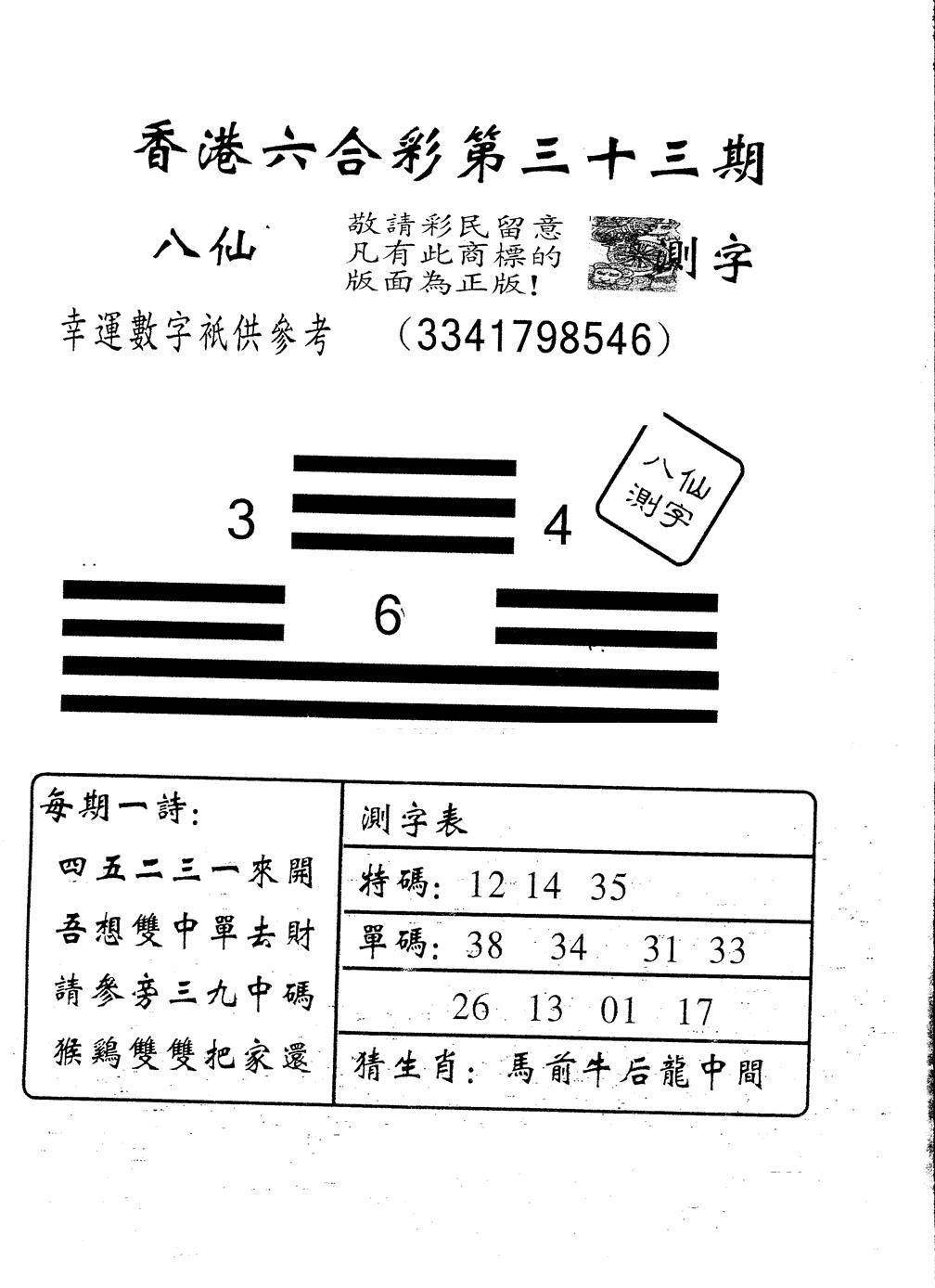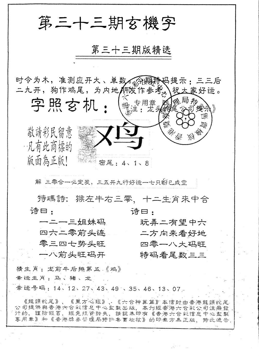 另版黄大仙灵码A