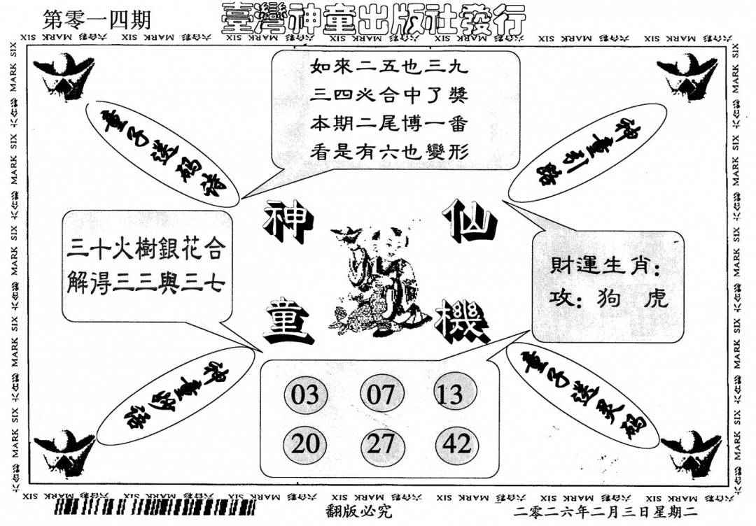 另版黄大仙灵码B