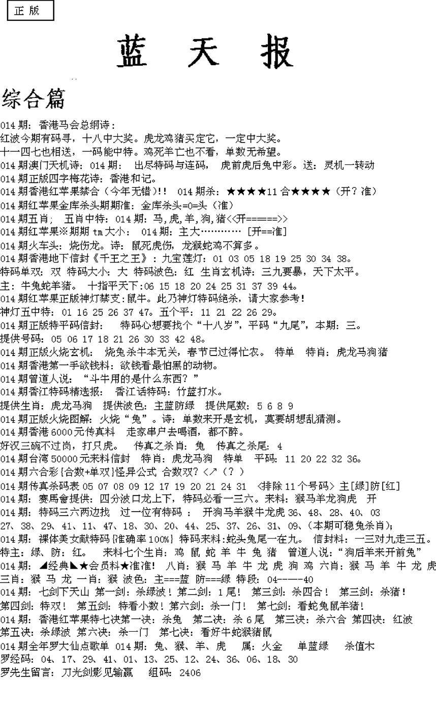 老版天机报