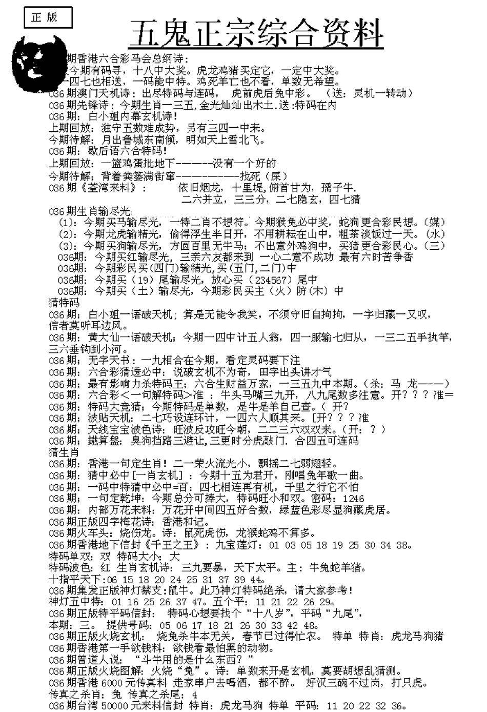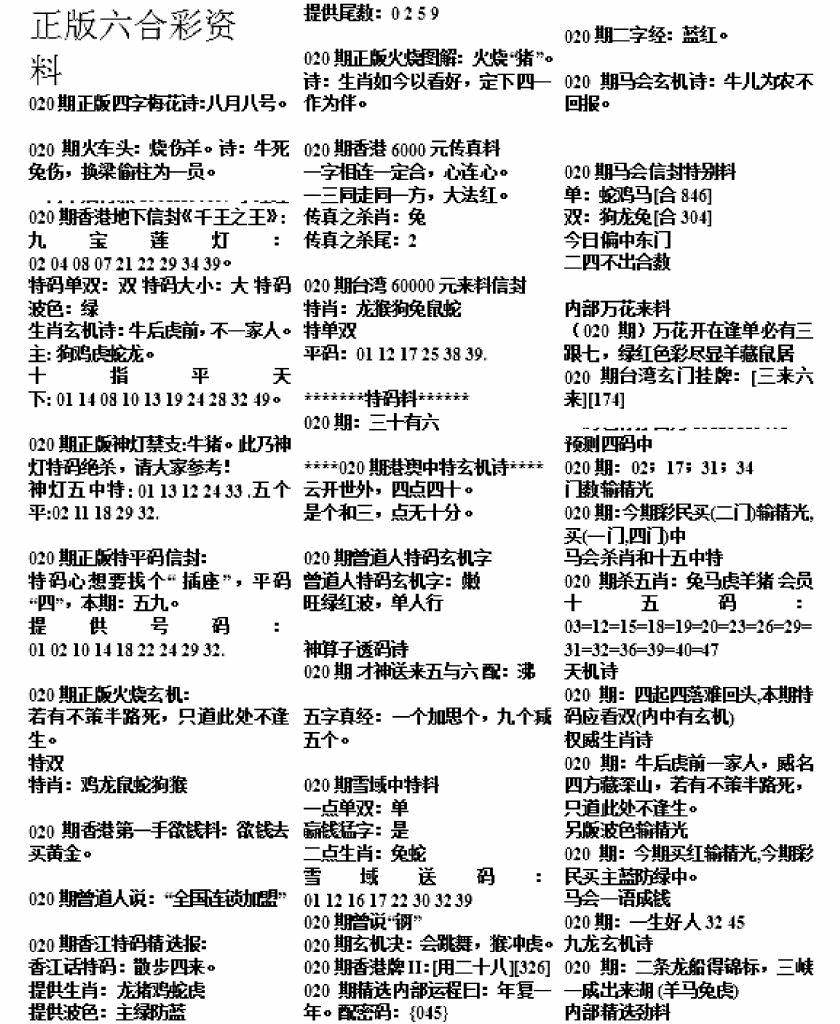 正版六合彩资料B
