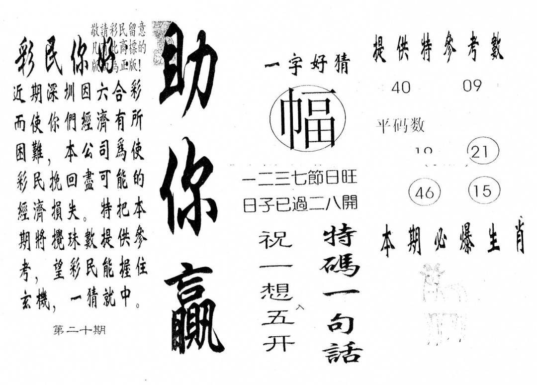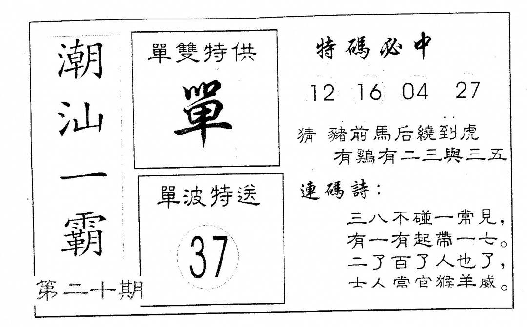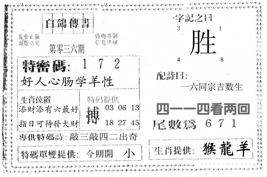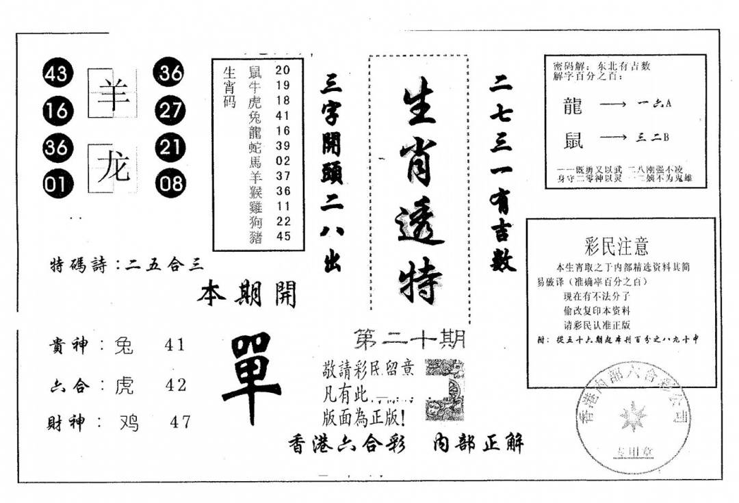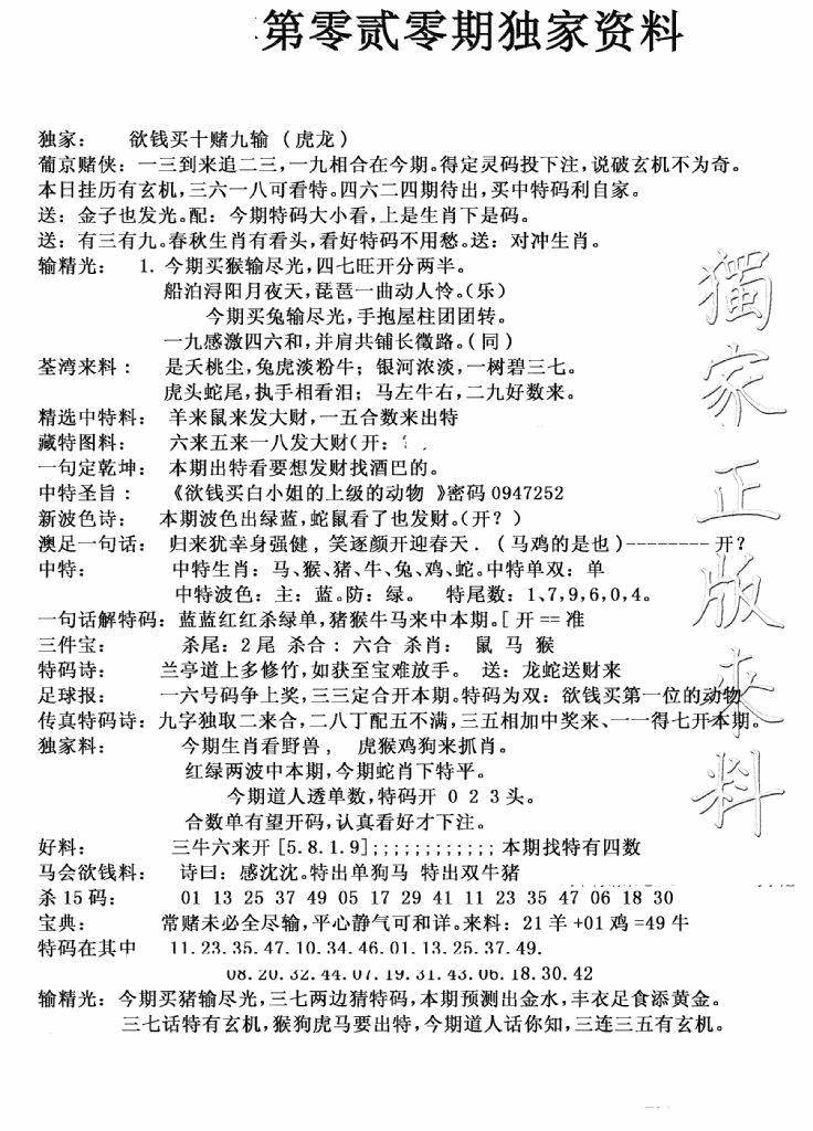 今日抓特码A(正版)