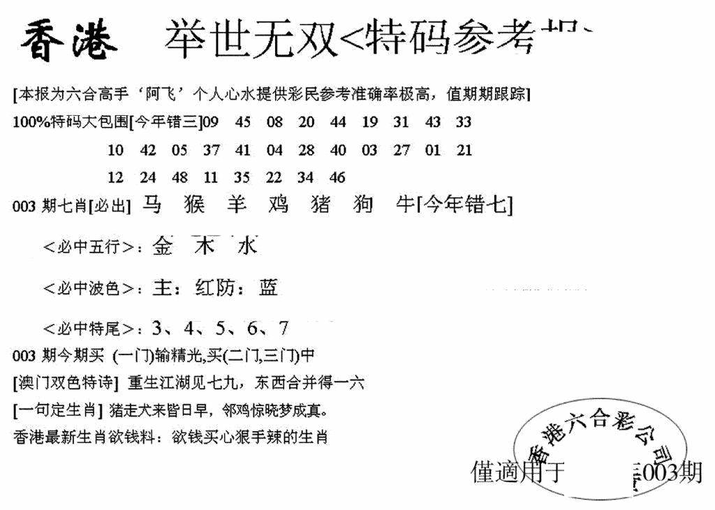 彩卷后庄A(保证香港版)