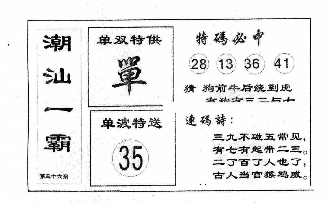 郑小姐特码报A