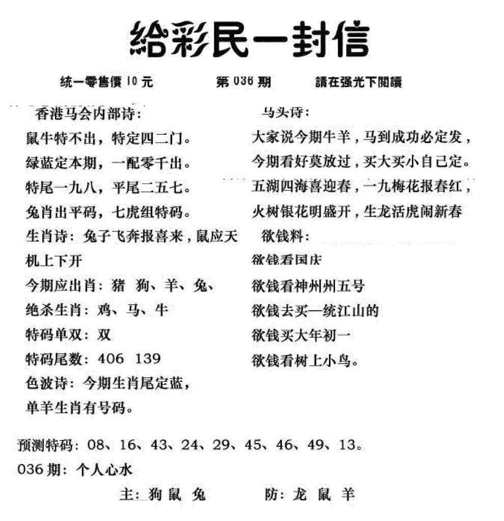 心水特码(信封)