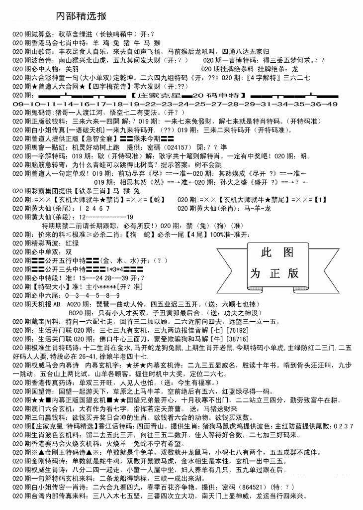 新版内部玄机A