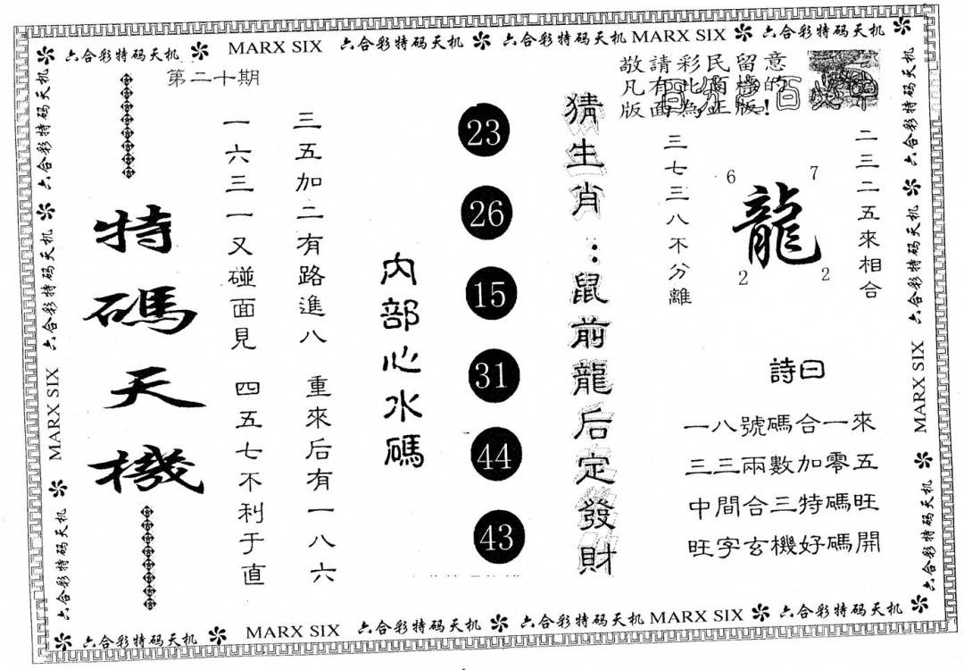 香港天机信封