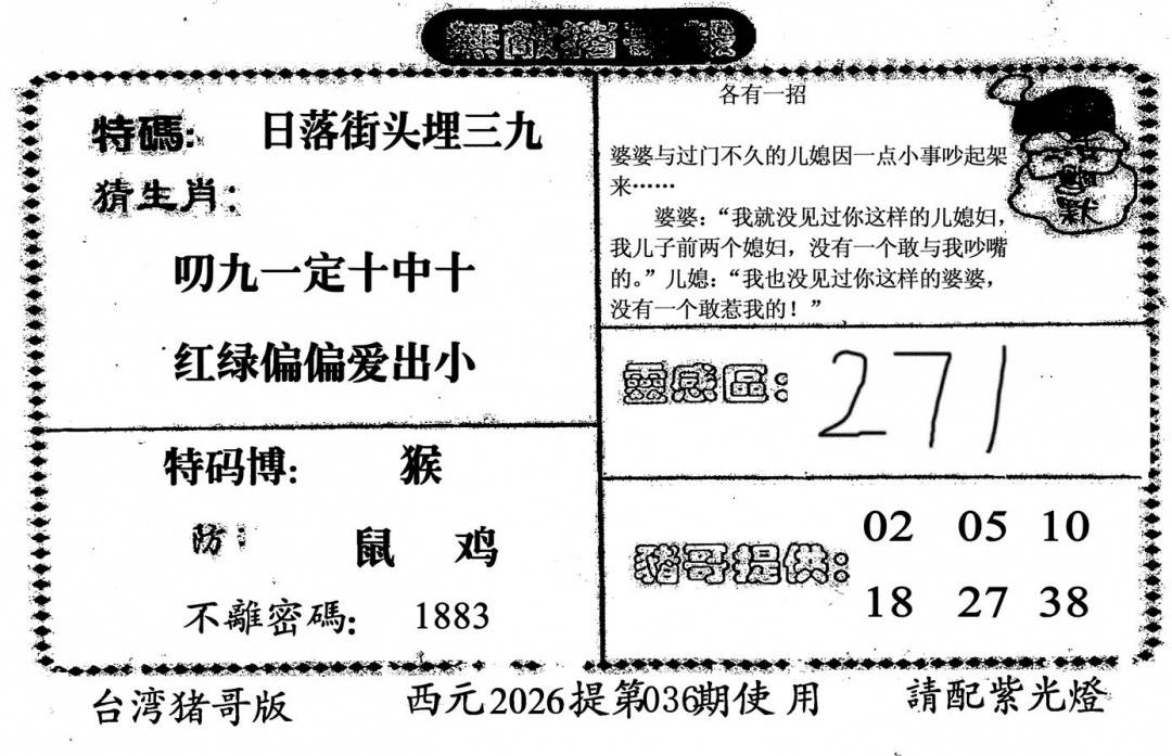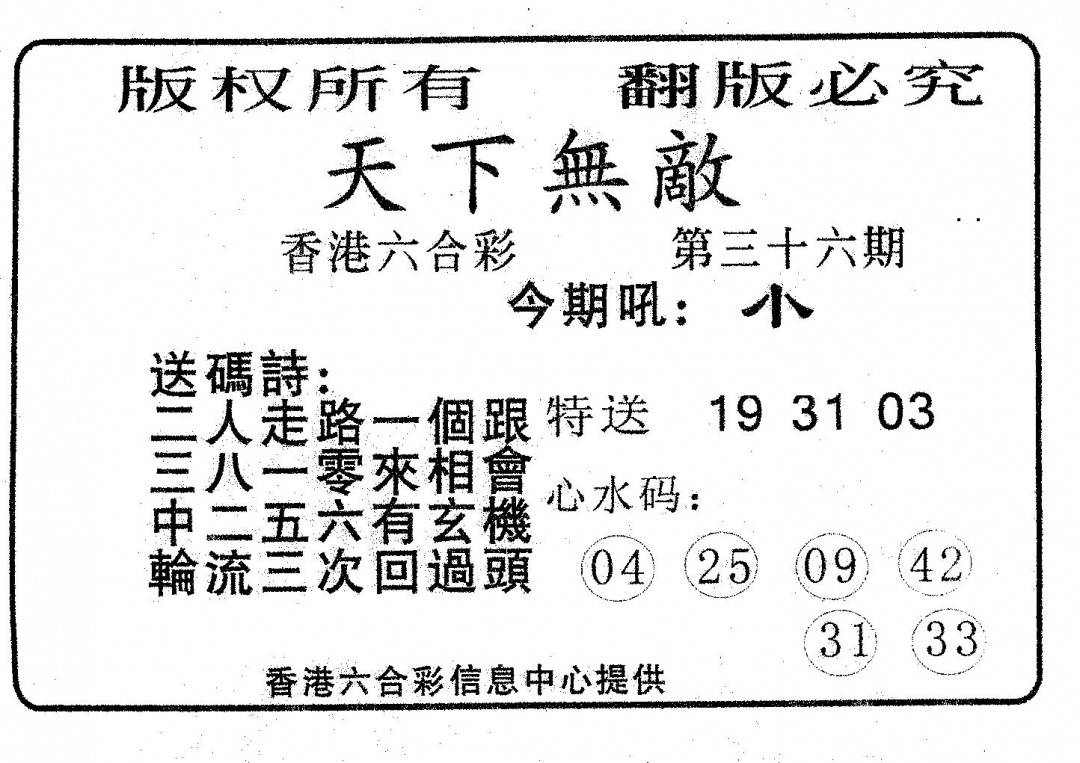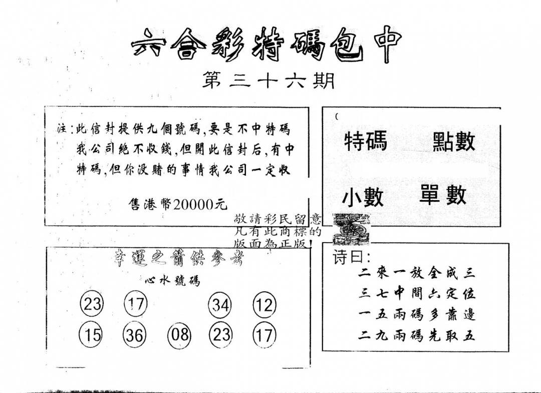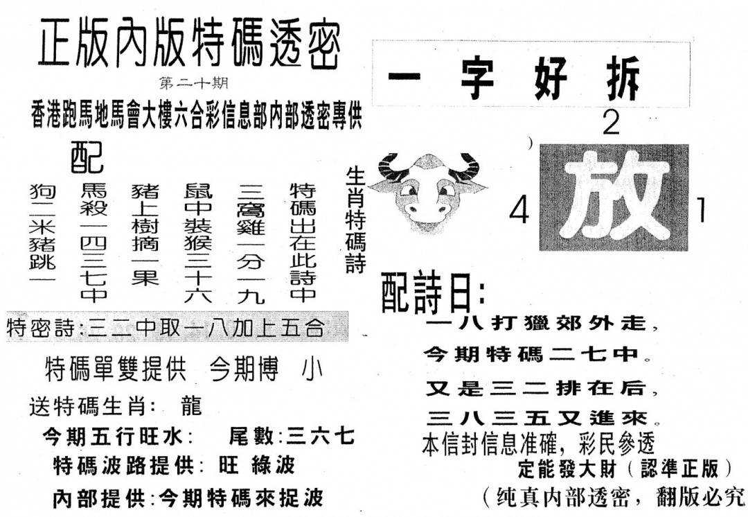另版心水特码(早图)