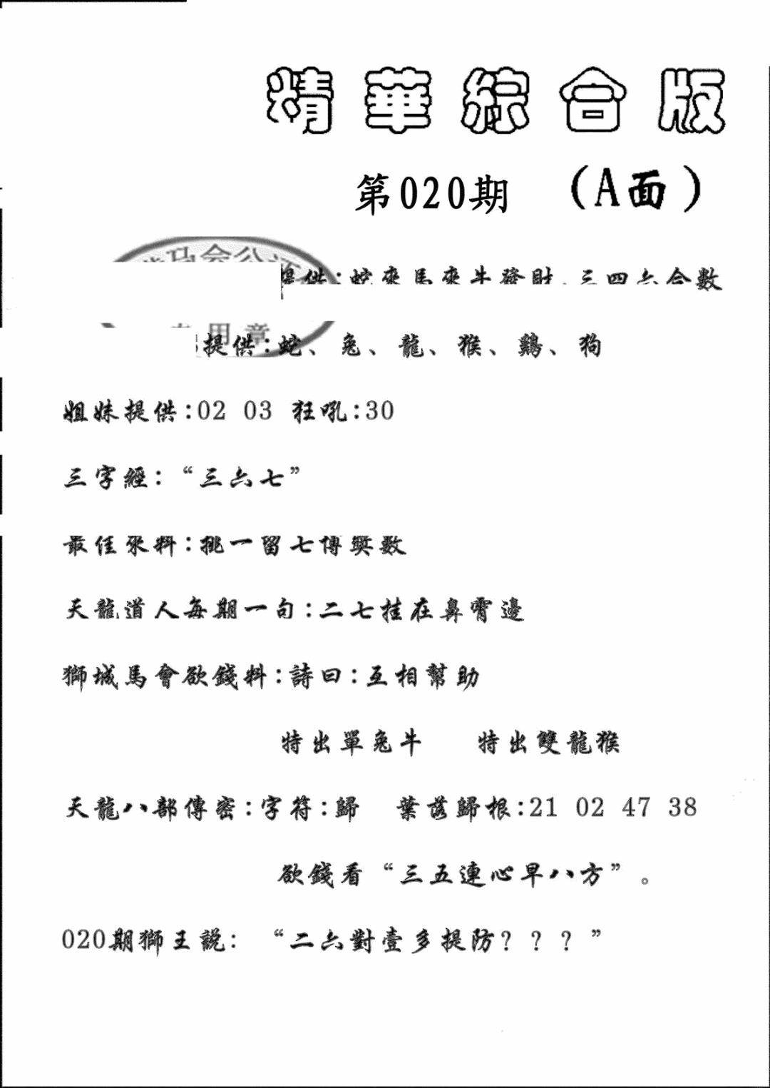 曾道人权威消息A