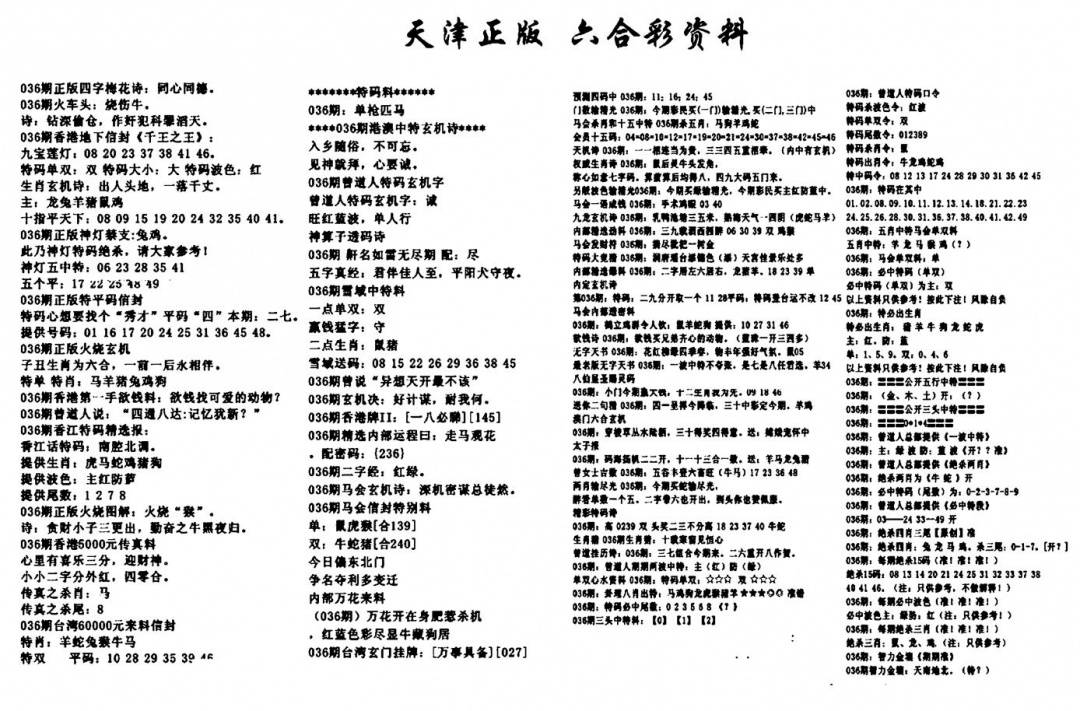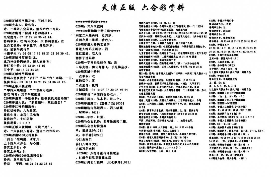 天津正版六合彩资料