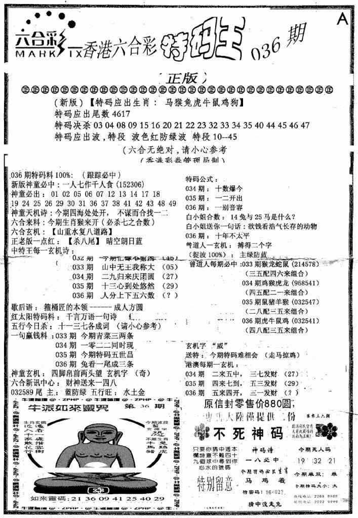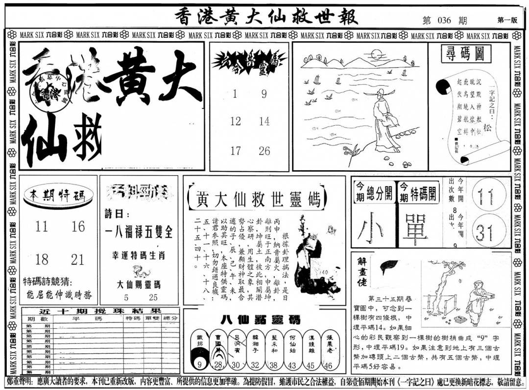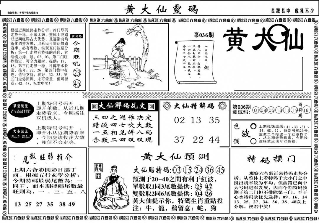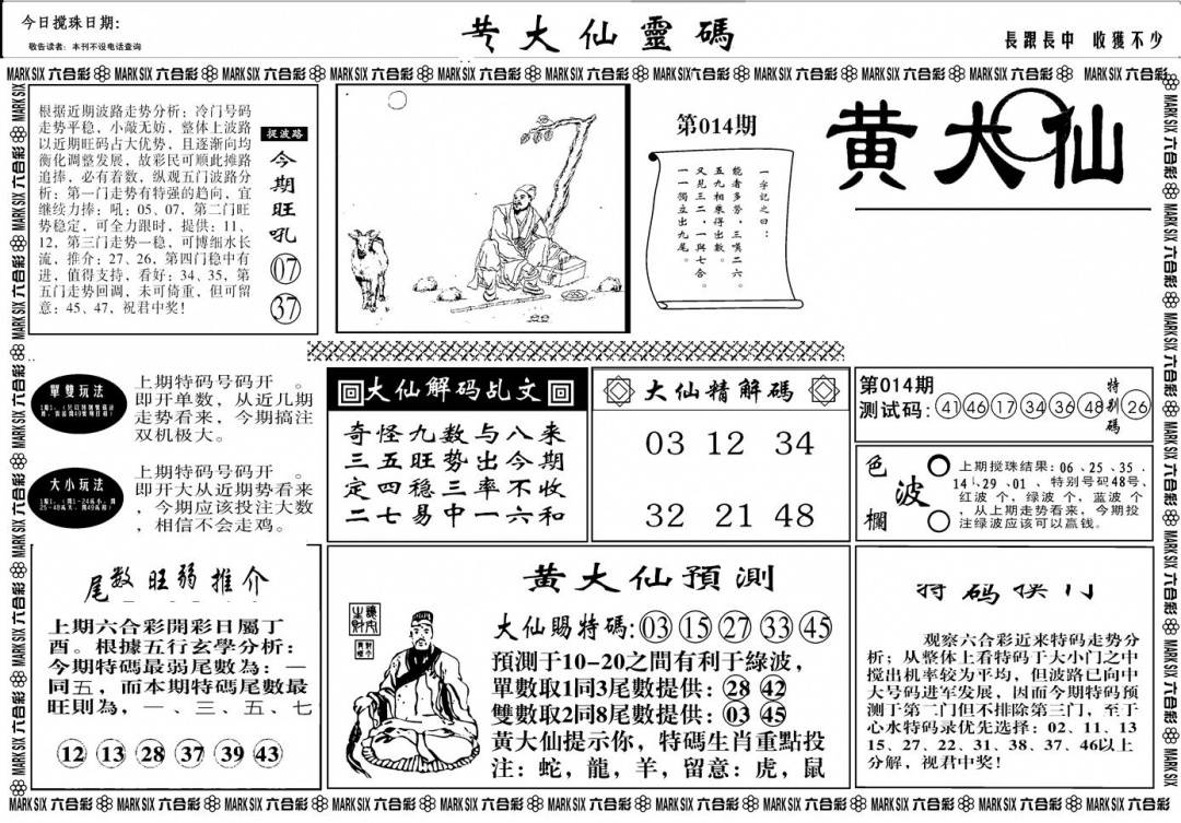 另版黄大仙灵码A
