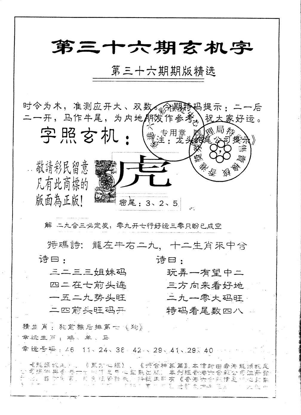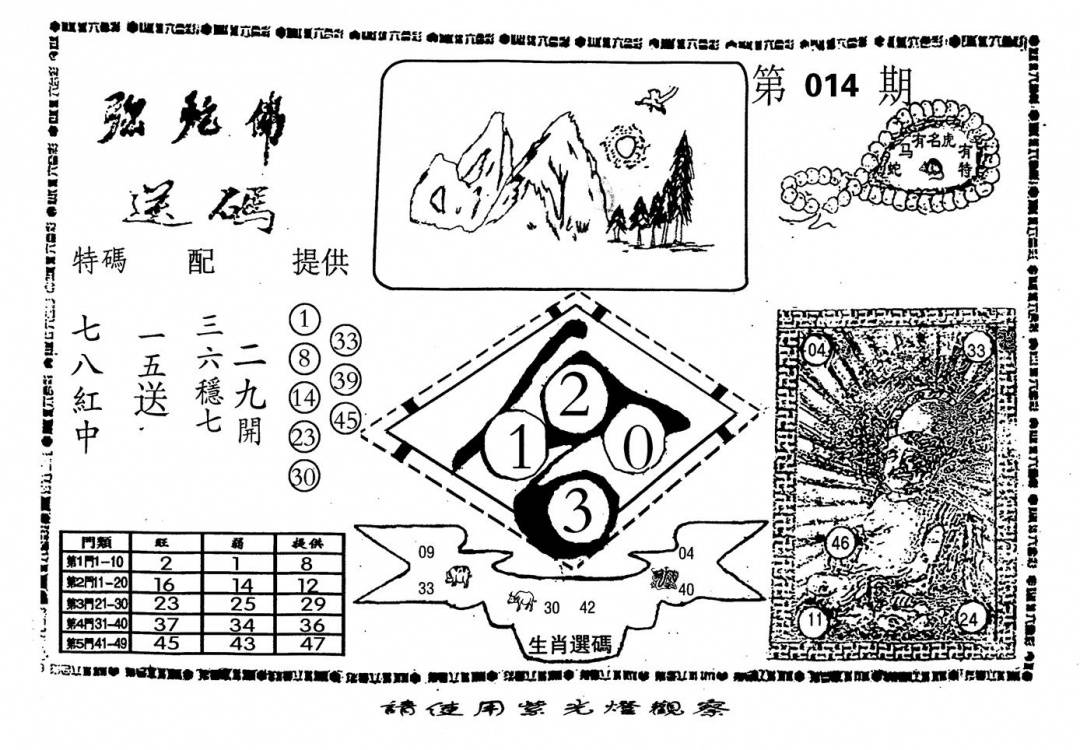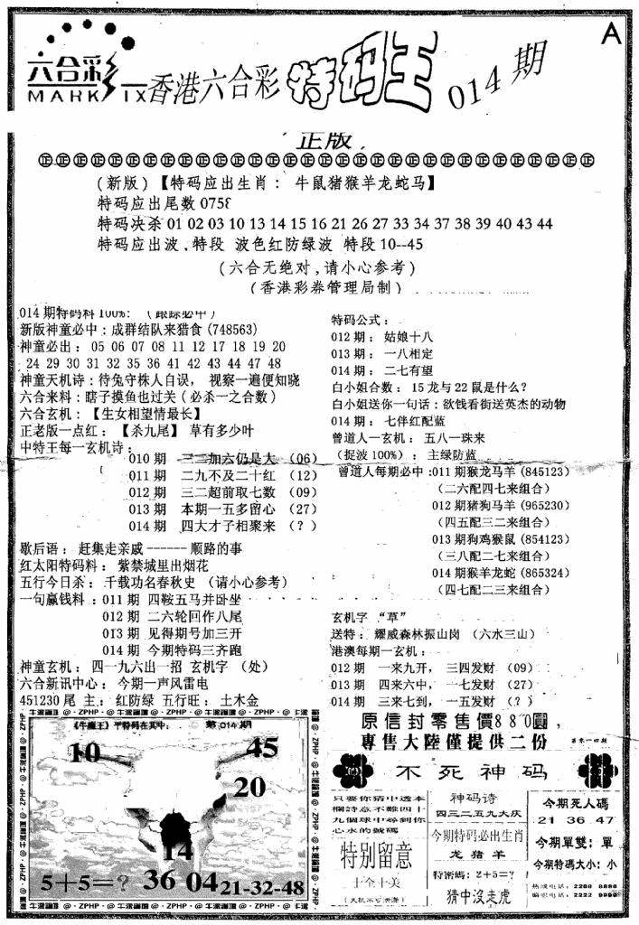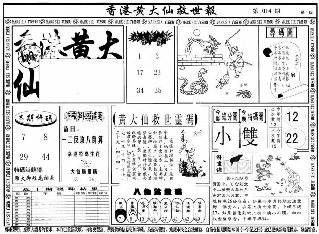 另版黄大仙灵码A