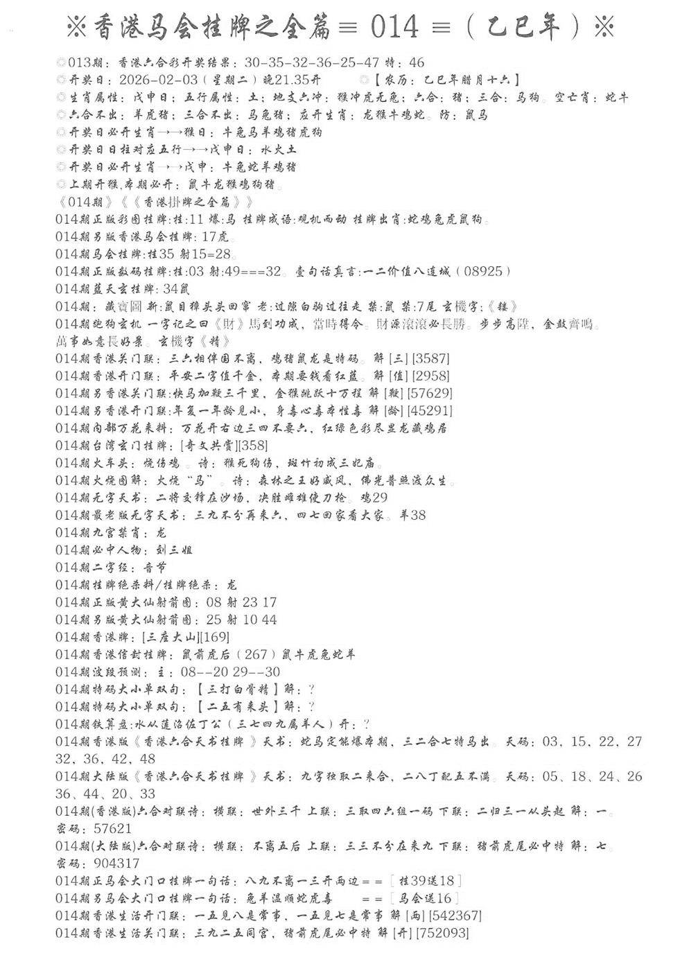 手写马会挂牌