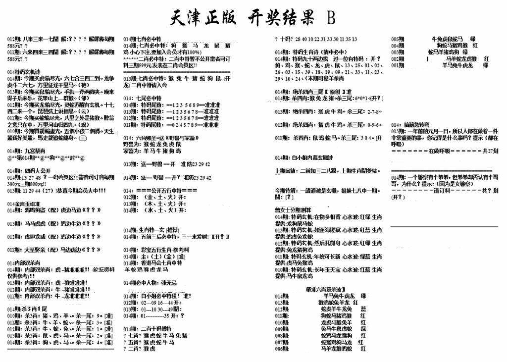 天津正版开奖结果B