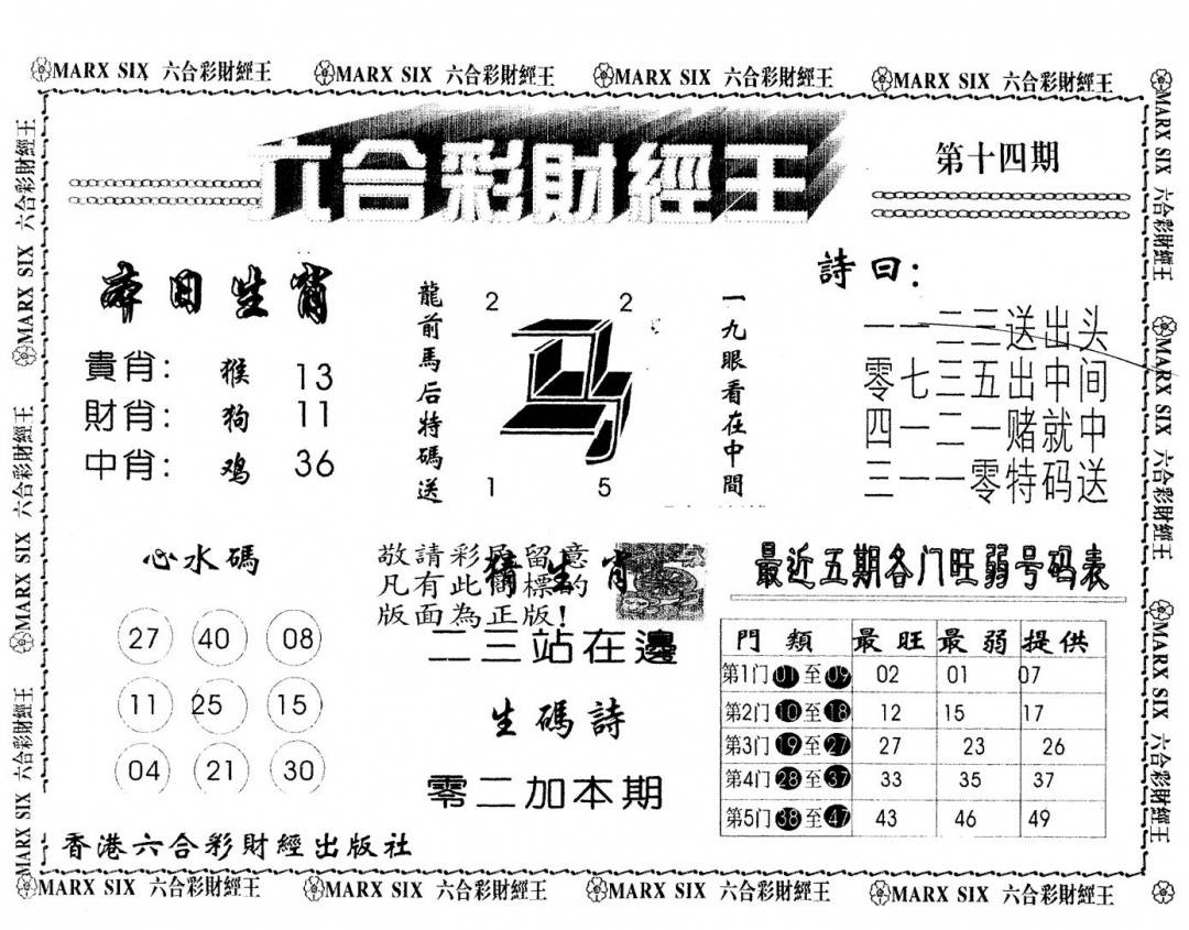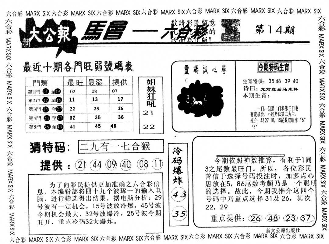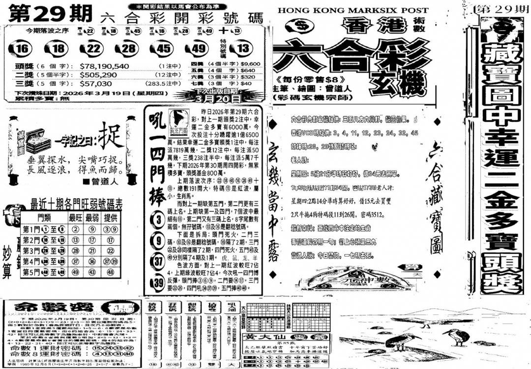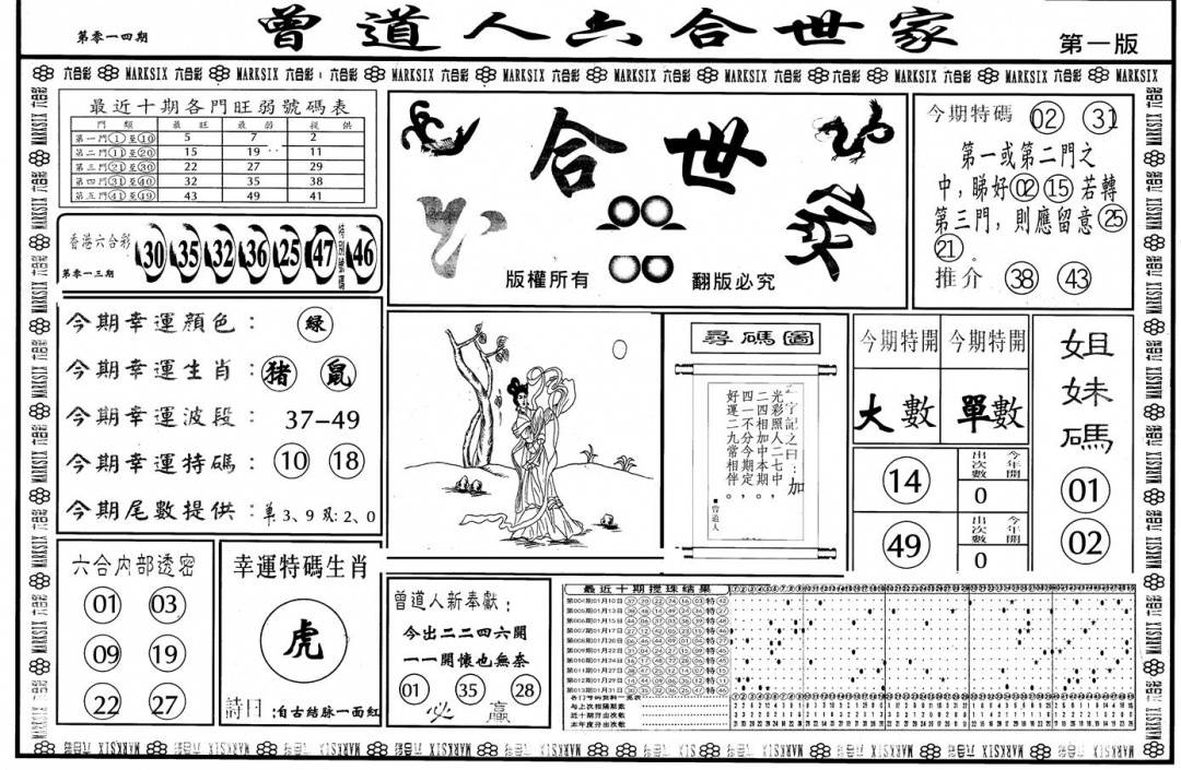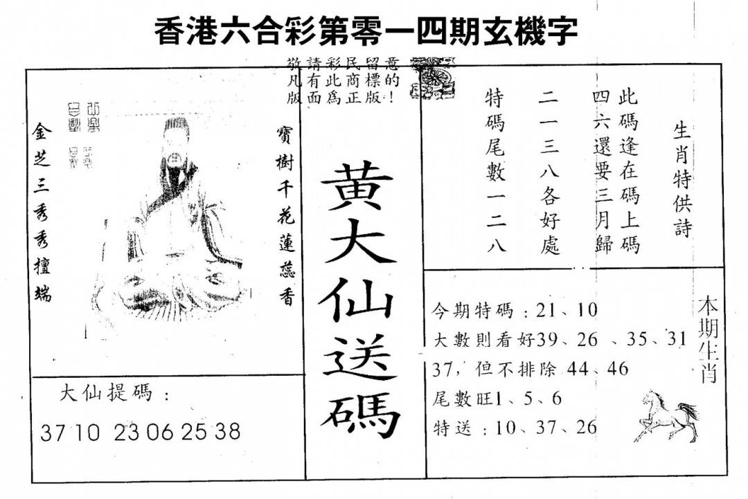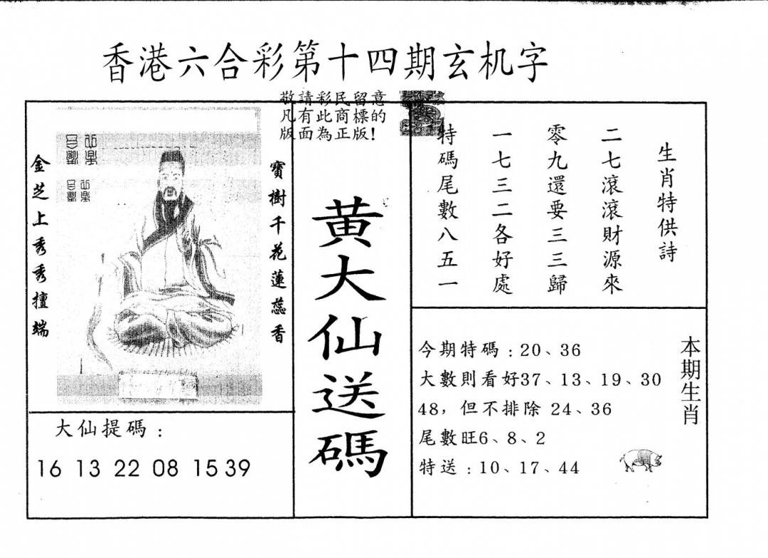 另版黄大仙灵码A