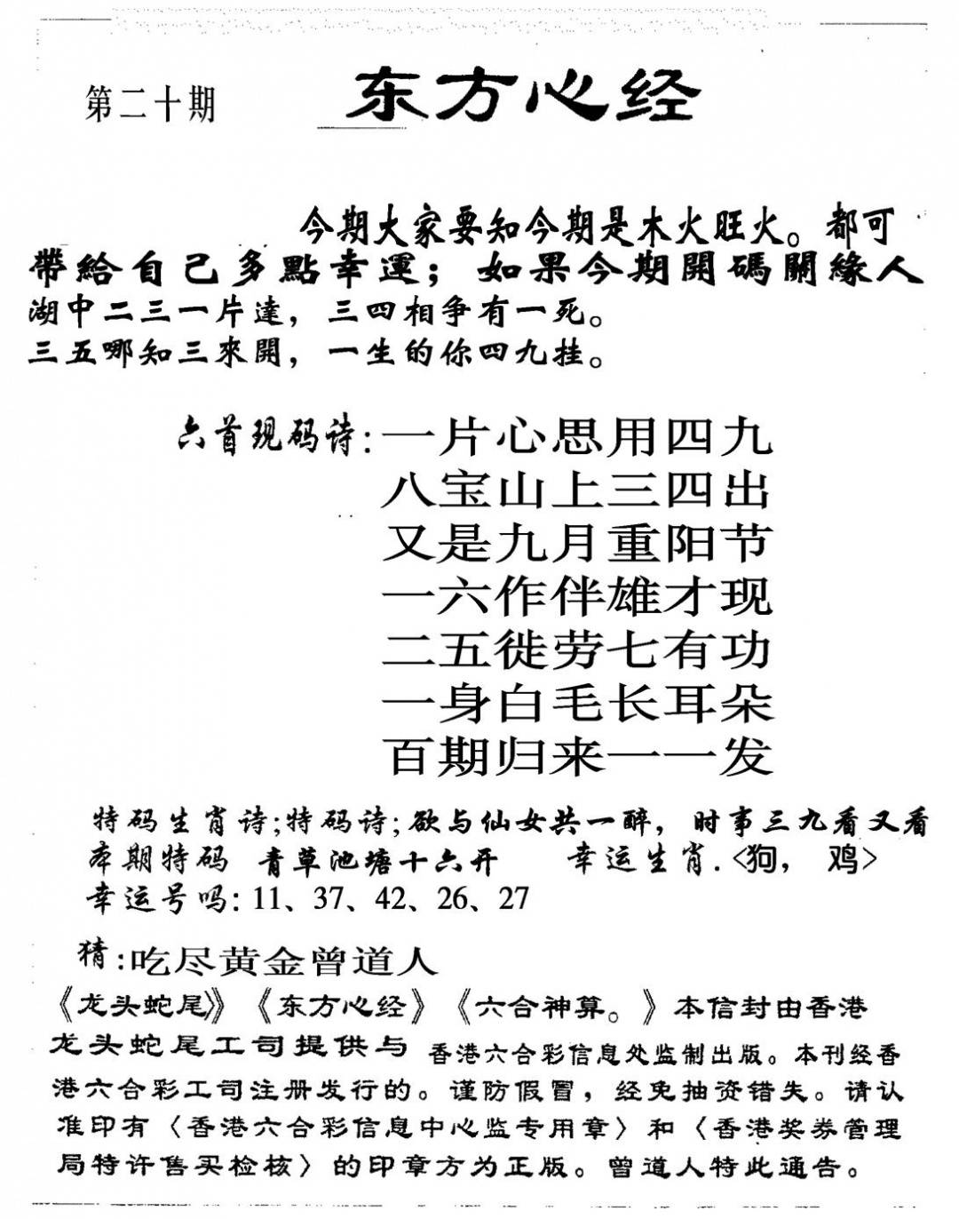 曾道人权威消息A