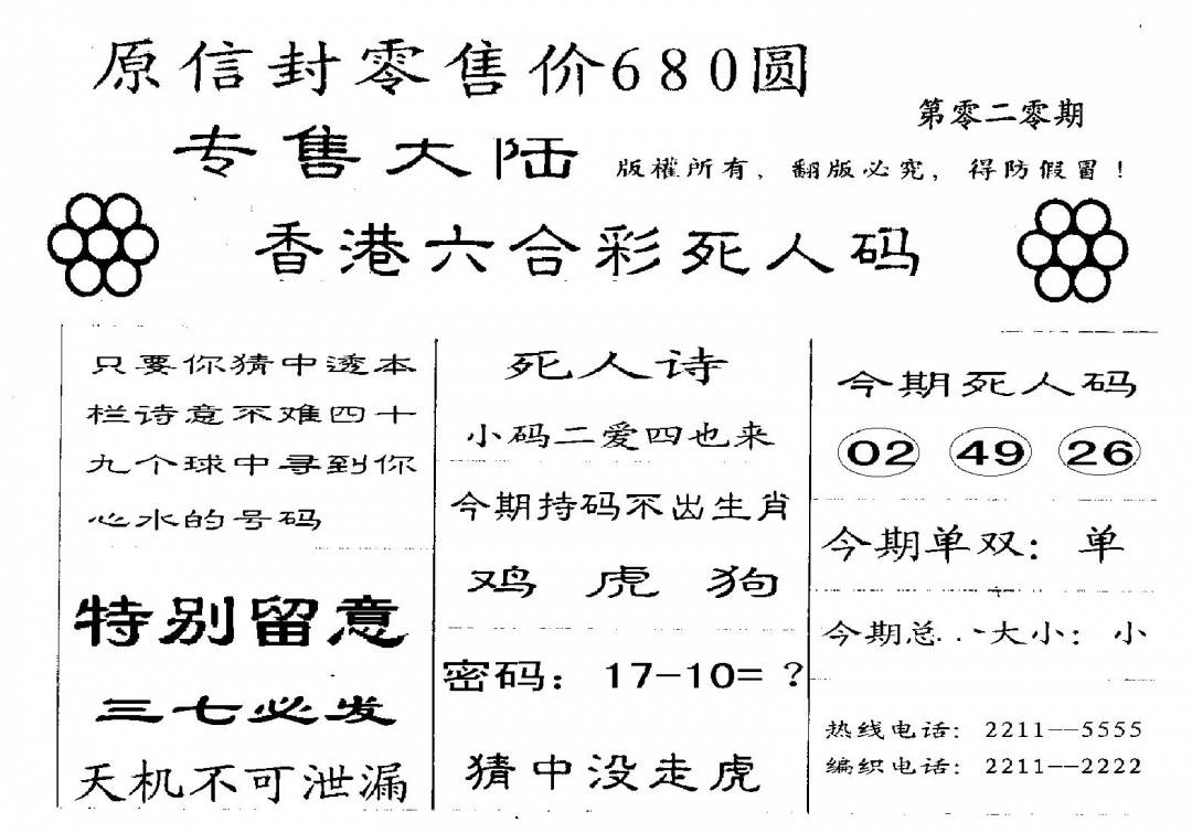 香港天机信封