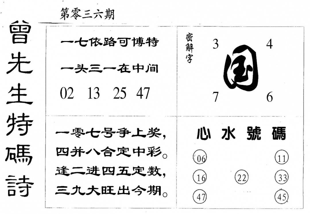 曾女士特码诗